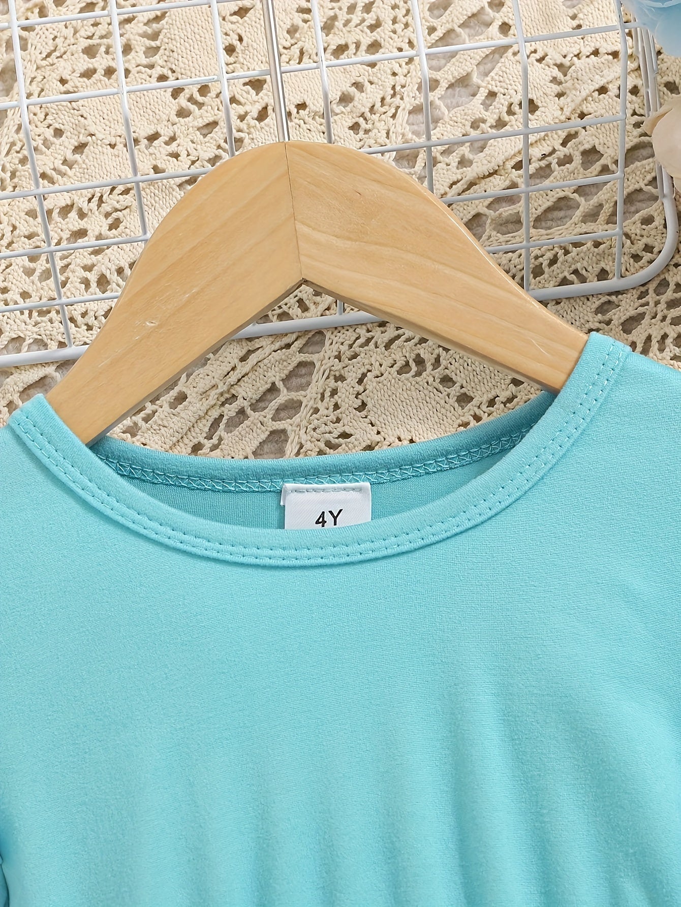 ' 2pcs Cozy Knit Outfit Set - Turquoise Blue Ruffled Collar Top & Black Butterfly Print Pants with Elastic Waist, Soft Warm Winter Clothes, Machine Washable for Fall/Winter Outdoor Play & Casual Attire, Casual Outfits for Coo