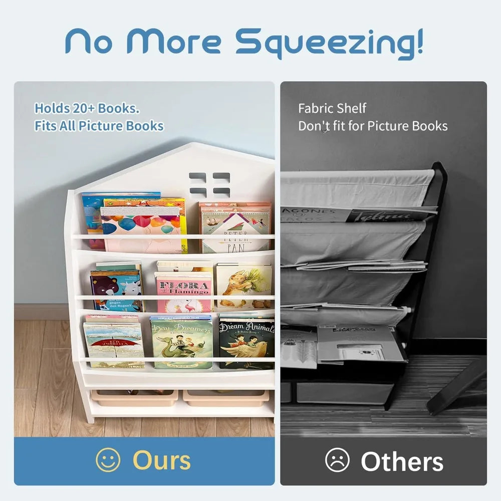 3 Tier Kids Bookshelf House Shape Montessori Storage