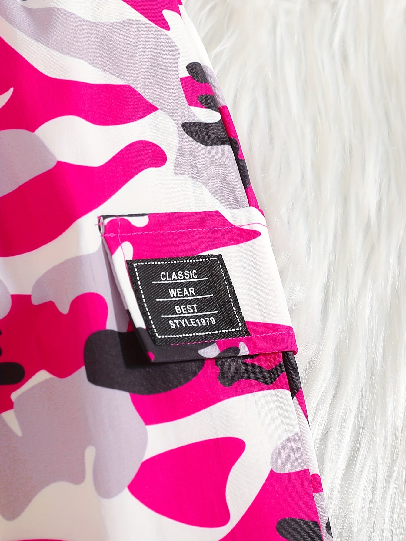 3pcs Combination Suit Girls' Pants, Girl Products, Girls' Clothing, Girl's Spring And Autumn Leisure Loose Fitting Fake Pocket Camouflage Street Workwear Wide Leg Pants Suitable For Going Out, School Gifts, School Season, for