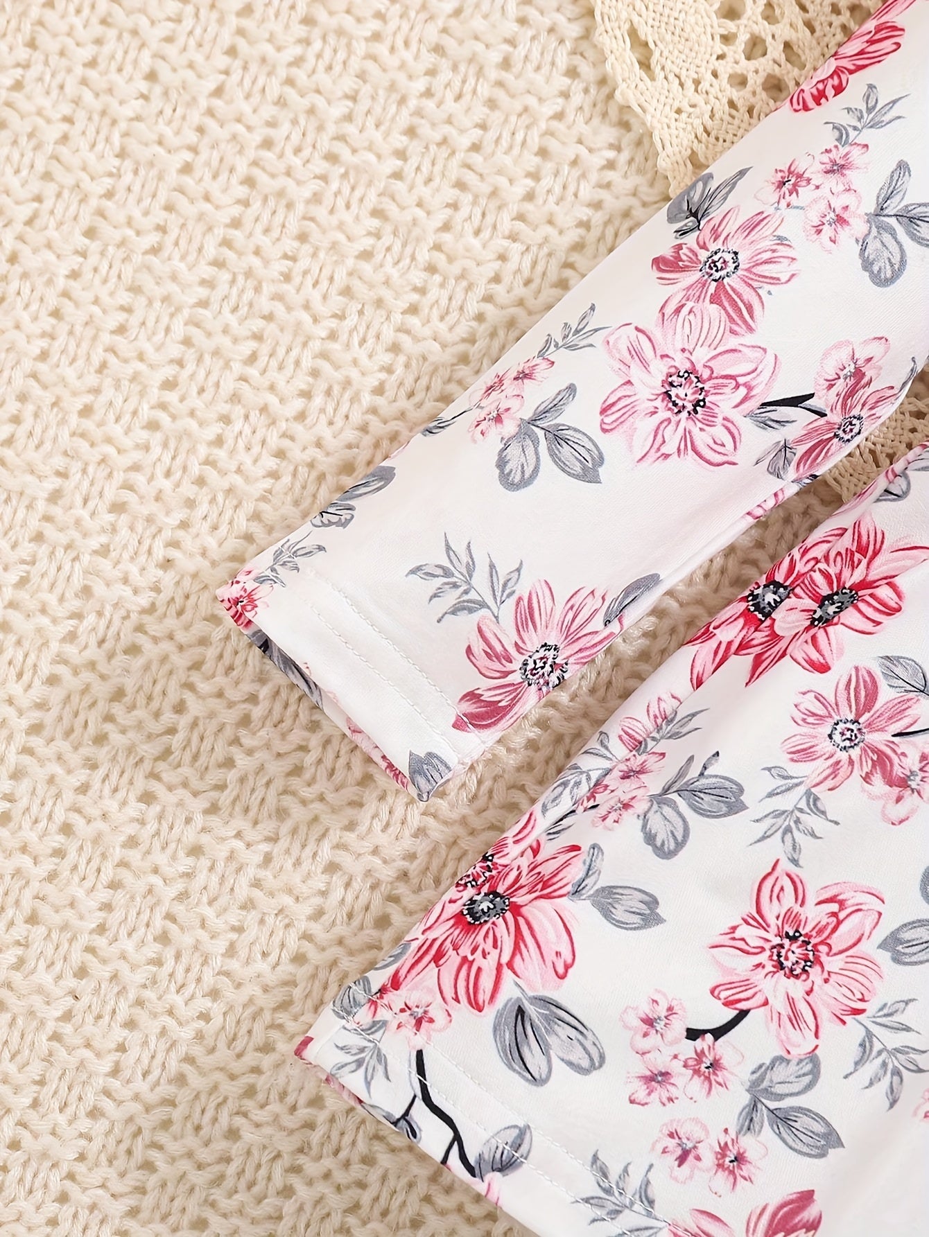 - Pieces: Includes a long sleeve shirt and pants as part of a coordinated three-piece set.