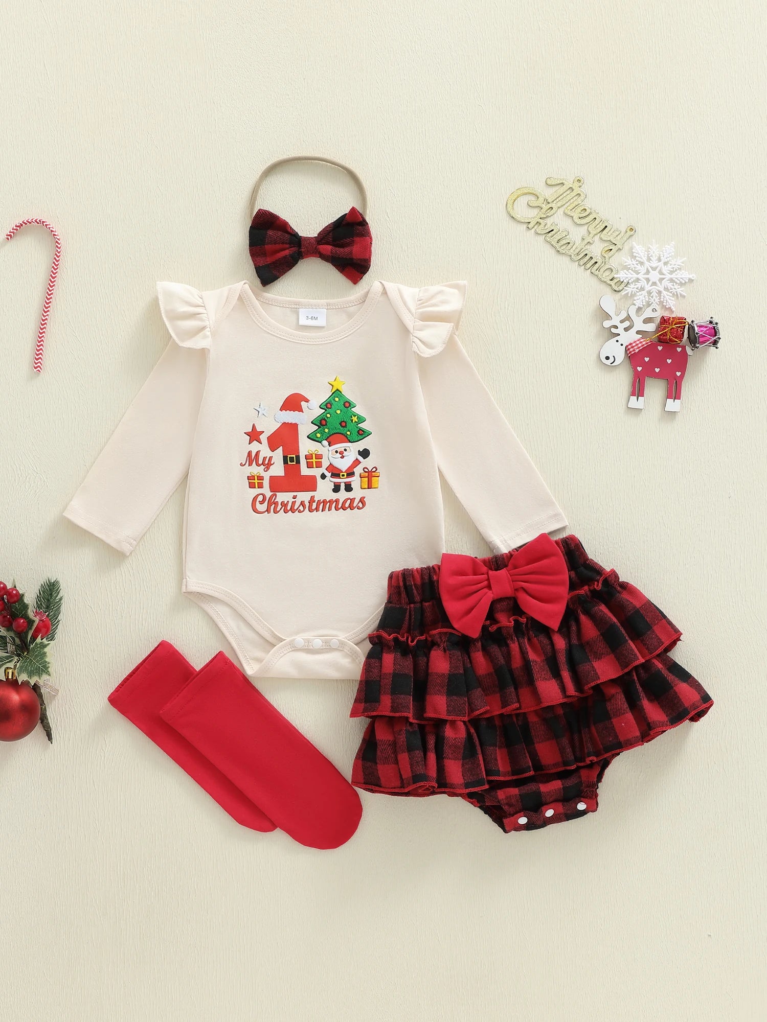 Baby Christmas Outfit Set With Festive Embroidery And Layered Shorts
