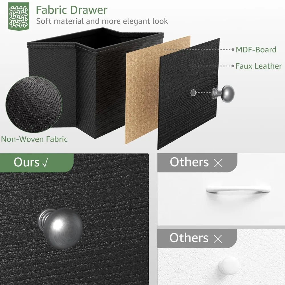 - Six fabric drawers: large, breathable storage that keeps essentials within easy reach