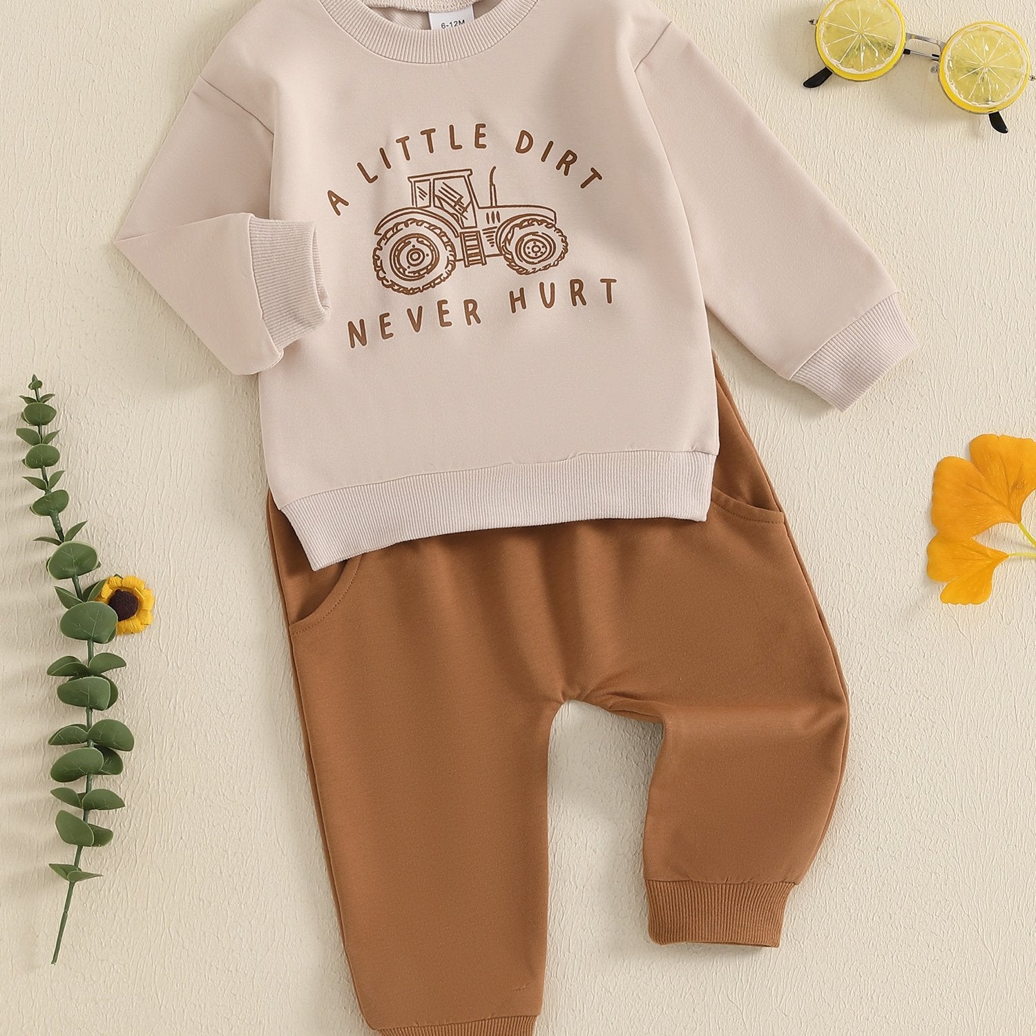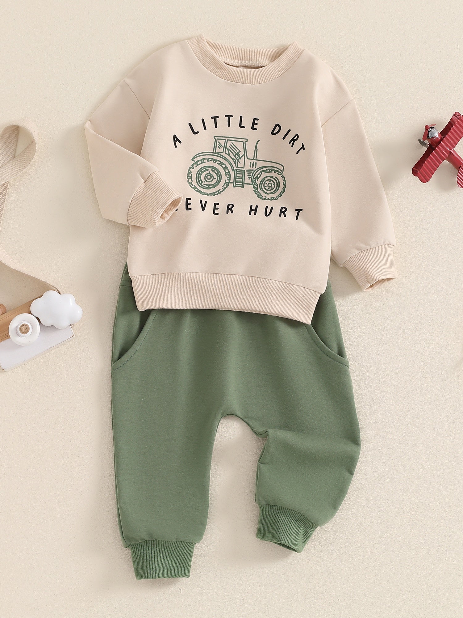 Cotton Blend Boys Outfit Set Tractor Print Sweatshirt Pants