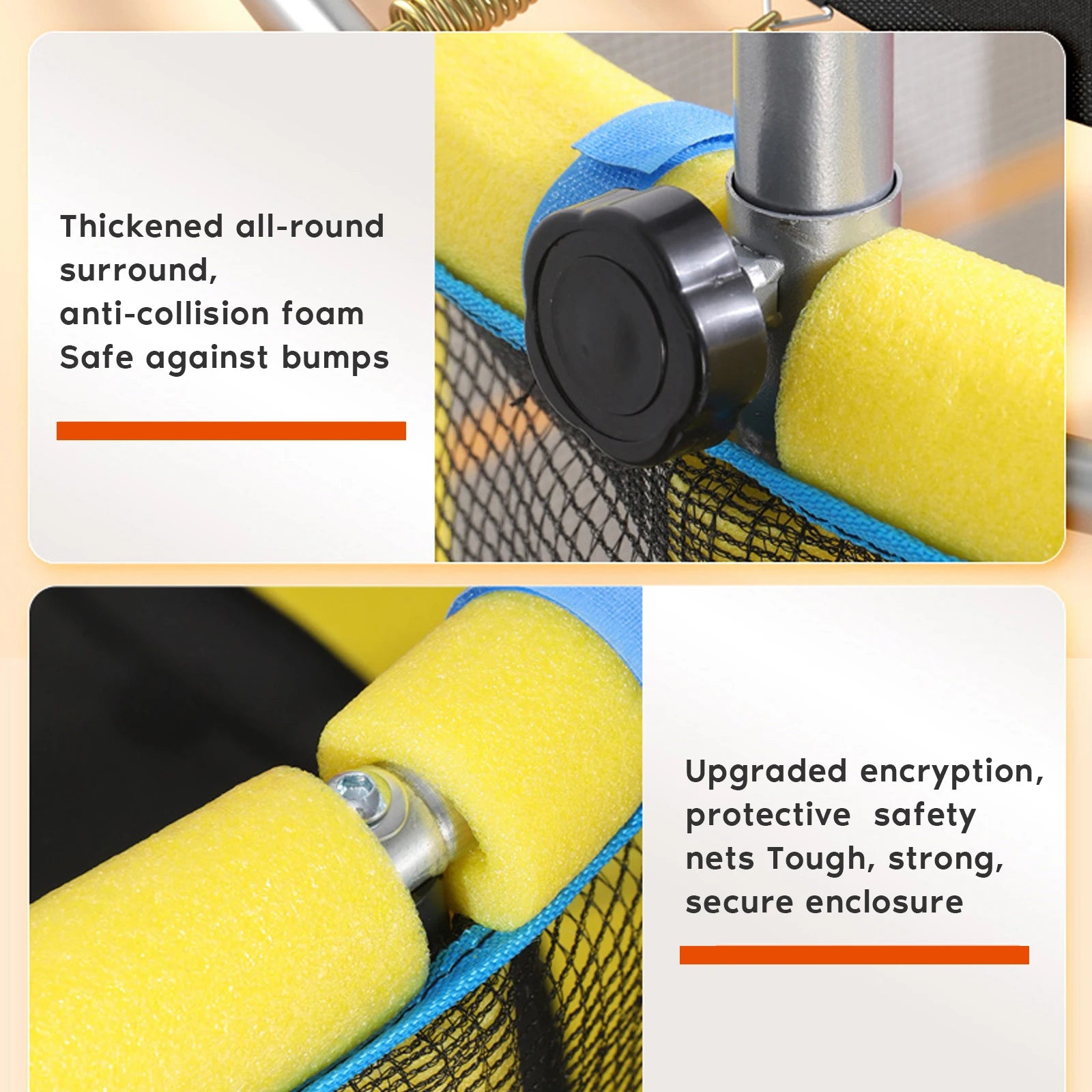 - Durable Construction: Crafted with a solid steel structure, this kids' trampoline features a fully galvanized steel frame that enhances resistance to rust and corrosion, ensuring longevity.