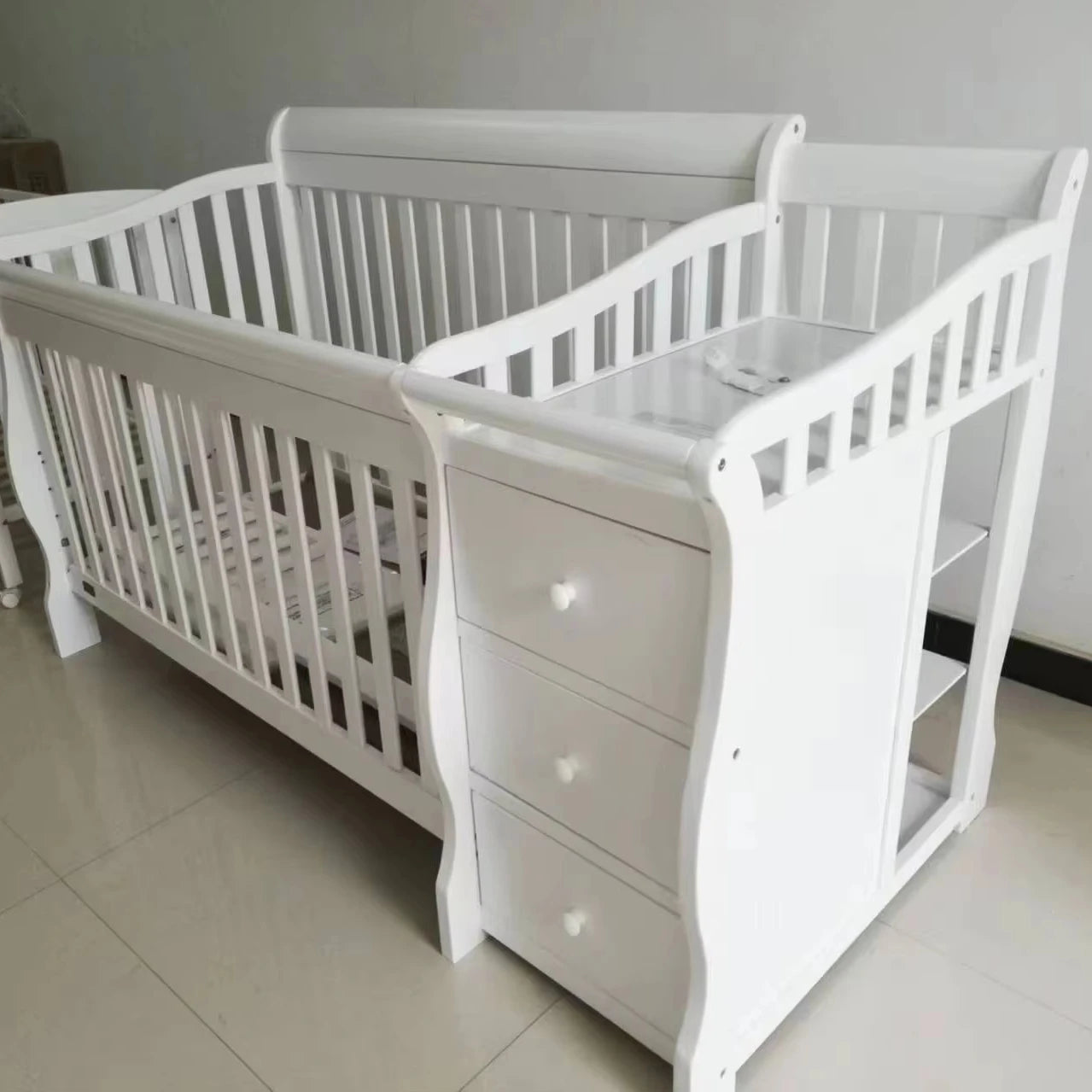 Kids Baby Cot Bed with Drawers and Diaper Hanging Storage Crib