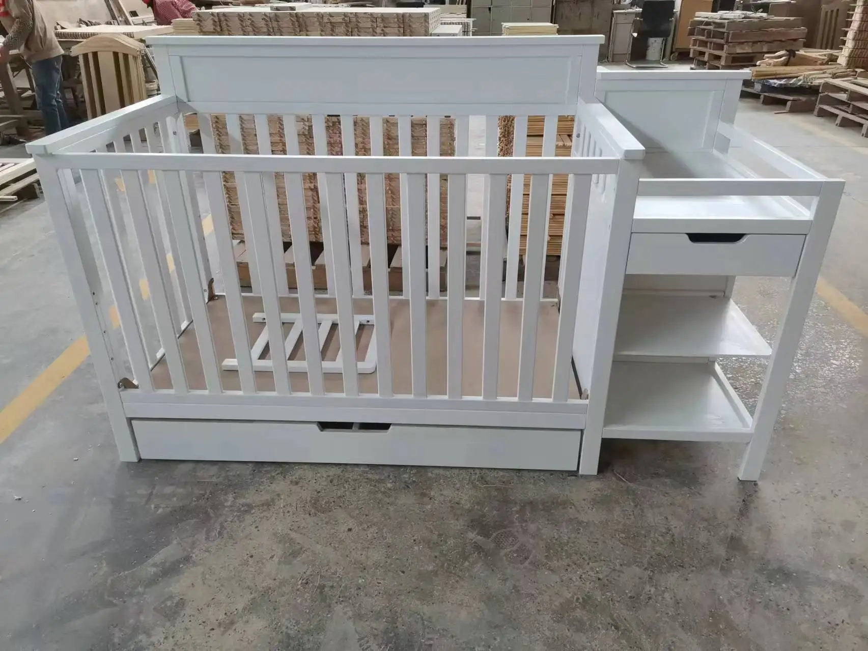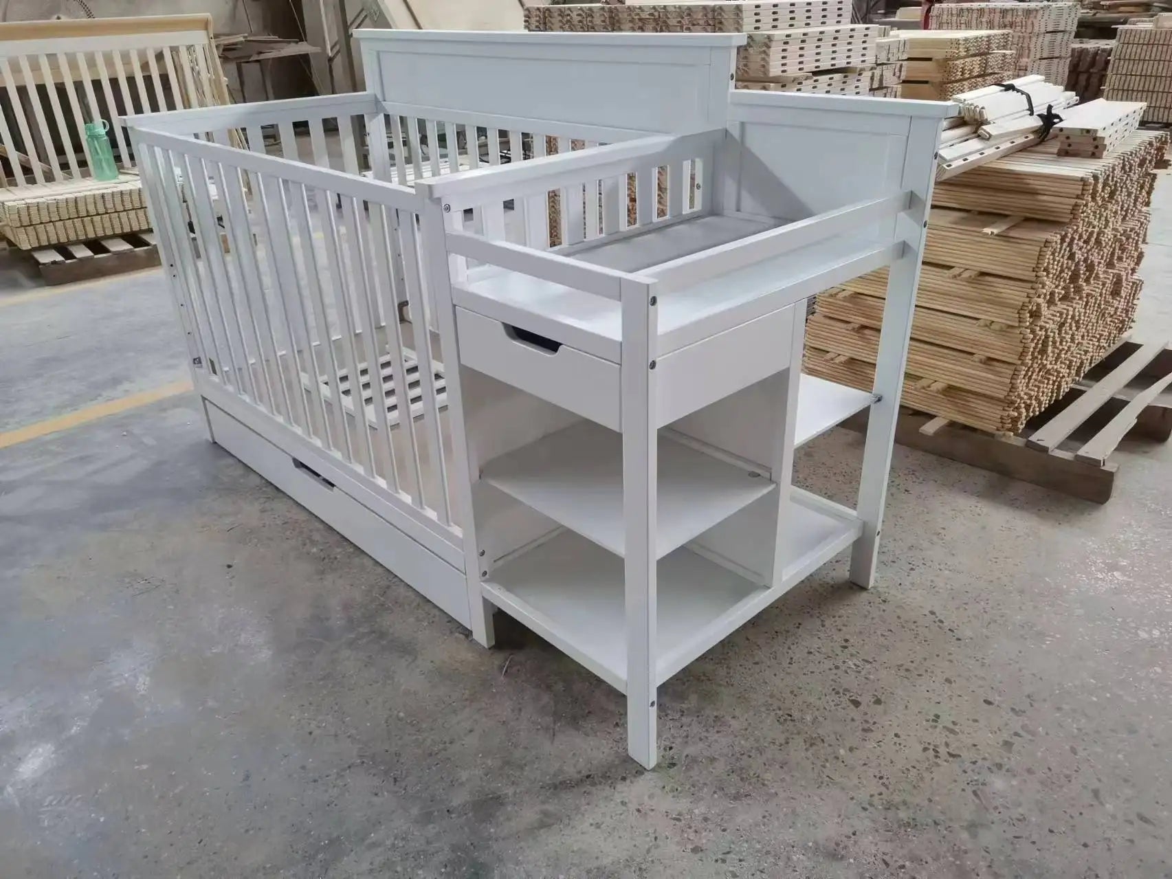This Kids Baby Cot Bed with Drawers and Diaper Hanging Storage Crib is the perfect blend of functionality and style for your little one's nursery. Designed with modern aesthetics in mind, this eco-friendly kids' furniture set is available in a natural color or can be customized to suit your decor needs. Crafted from premium materials such as beech, pine, plywood, solid wood, and MDF, it ensures durability and safety for your child.