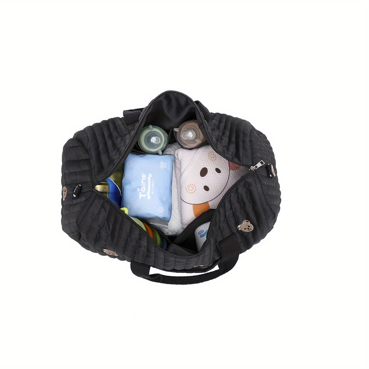 Large Mommy Bag Durable Polyester Large Capacity Embroidered Black Teddy Bear Multi Functional Storage Portable Crossbody Design Everyday Carry Bag Playful Design Sturdy Handle Diaper Bag