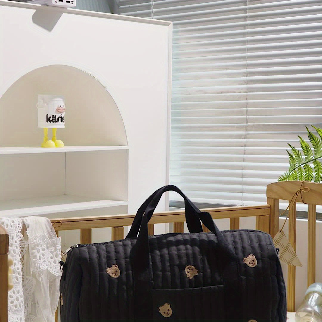 Introducing the Large Mommy Bag – the ultimate solution for parents seeking a stylish yet functional diaper bag. Made from durable polyester, this large capacity bag combines practicality with a playful embroidered black teddy bear design. Perfect for everyday use, it’s not just a diaper bag; it's a multi-functional storage solution that adapts to your lifestyle.