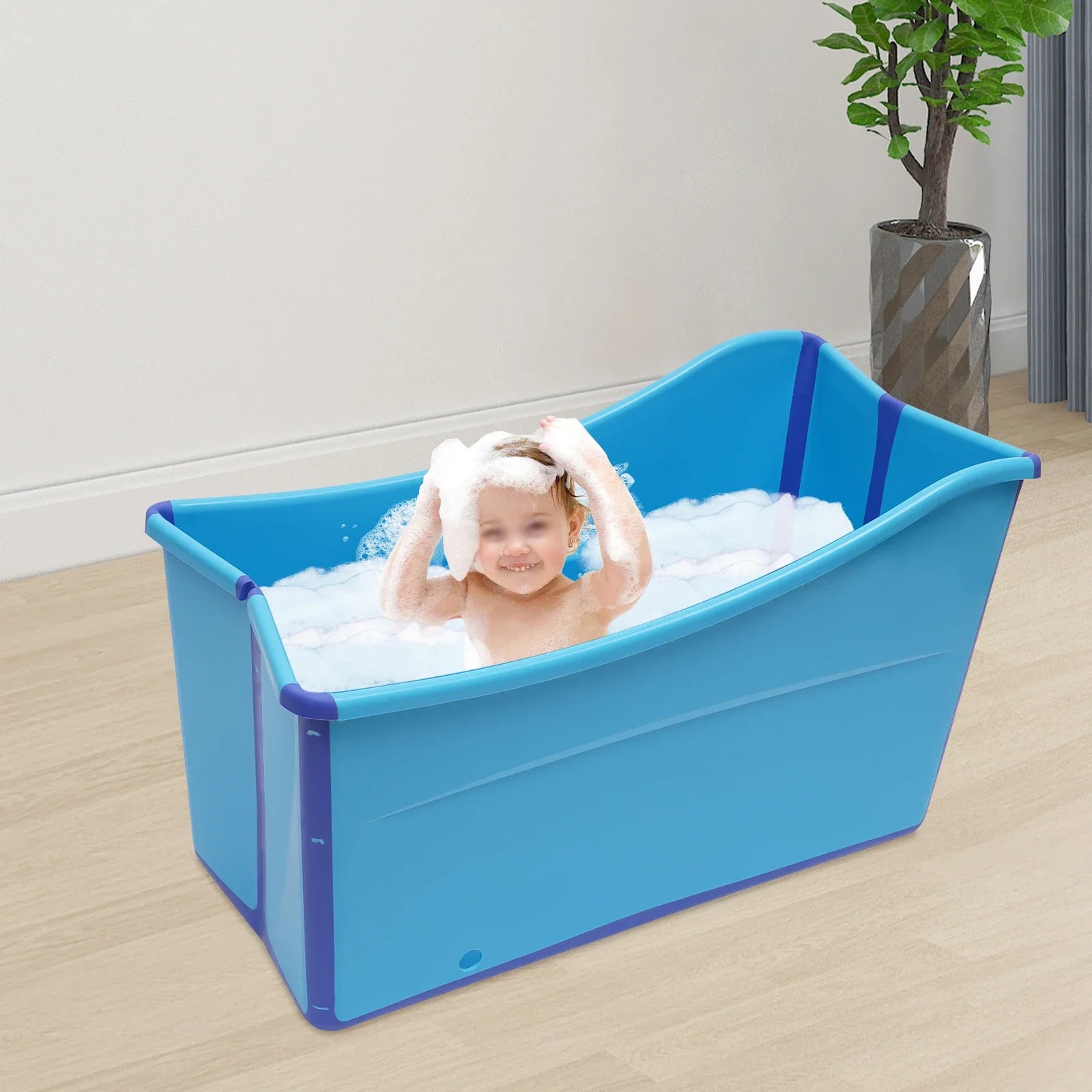 Oversized Foldable Bath Tub Portable Spa Sauna Bath Rectangle Bucket Water Tub for Adults and Kids Blue