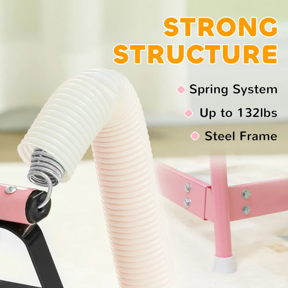 Spring Rocking Horse Plush Ride On For Kids Pink Toy